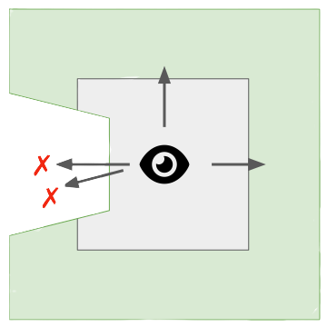 We apply a gentle haptic nudge to suggest a direction that will maximise the distance you can travel. Taking you back to the center of a square room, or the area of the minimal potential field.